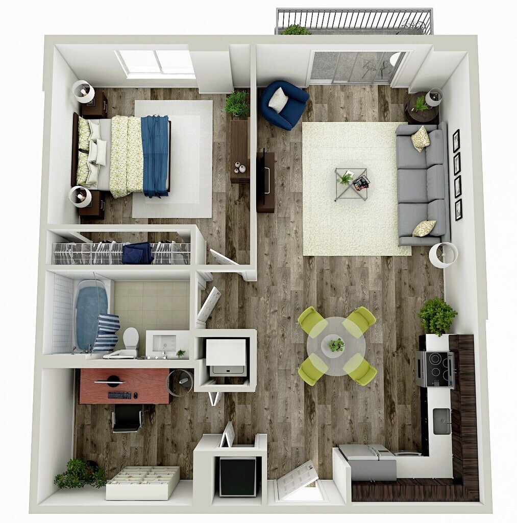 1 Dormitorio, 1 Baño, 640 pies²Disponible AhoraGalería del Modelo