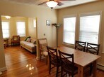 Spacious, newly renovated, fully furnished, 2 bedroom - 1 bathroom, main floor condo in a quiet, 3-unit building near Gilman Square in Somerville and 8 minutes walk from Union Square. One block away from the Gilman Square T Station (Green Line) and community bike/walk path. Door step public transit access, minutes from the Davis Square (Red Line) Station. Features large eat-in kitchen with dishwasher and microwave, dining and living rooms, lots of closet/storage space, hardwood floors, front and back porch and on-site washer/dryer. Private parking option available upon request.