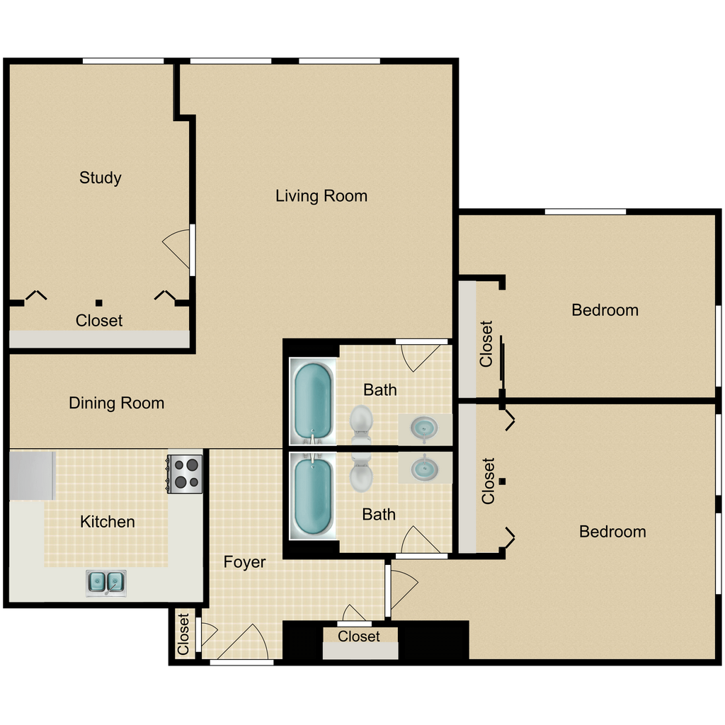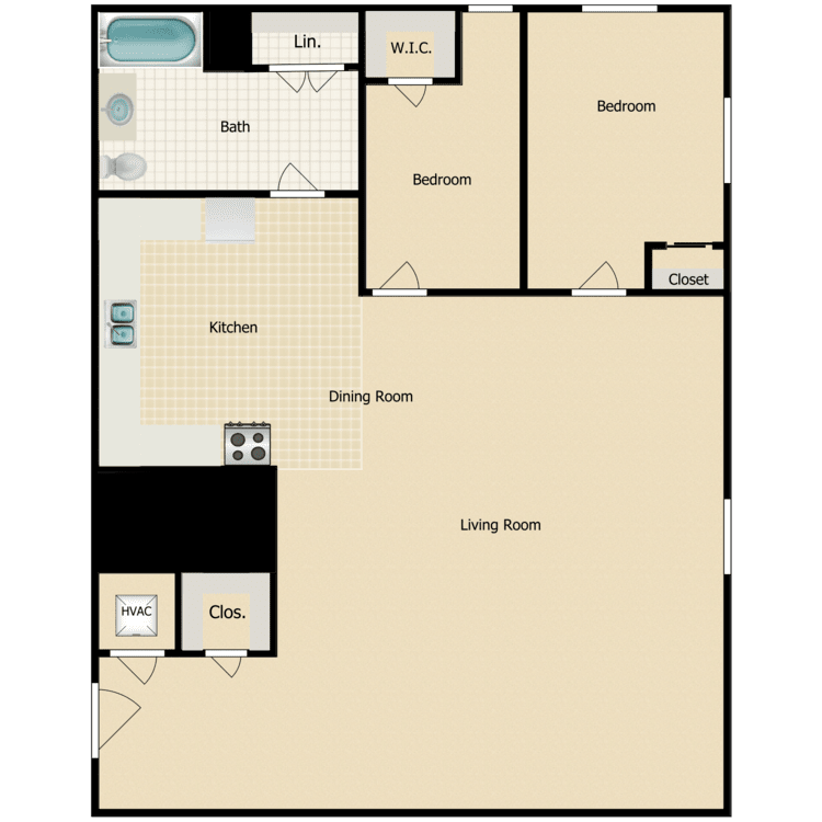 Modelo de apartamento: B2Llame para Precios2 Dormitorios, 1 Baño, 973 sq ftNo Disponible![]()