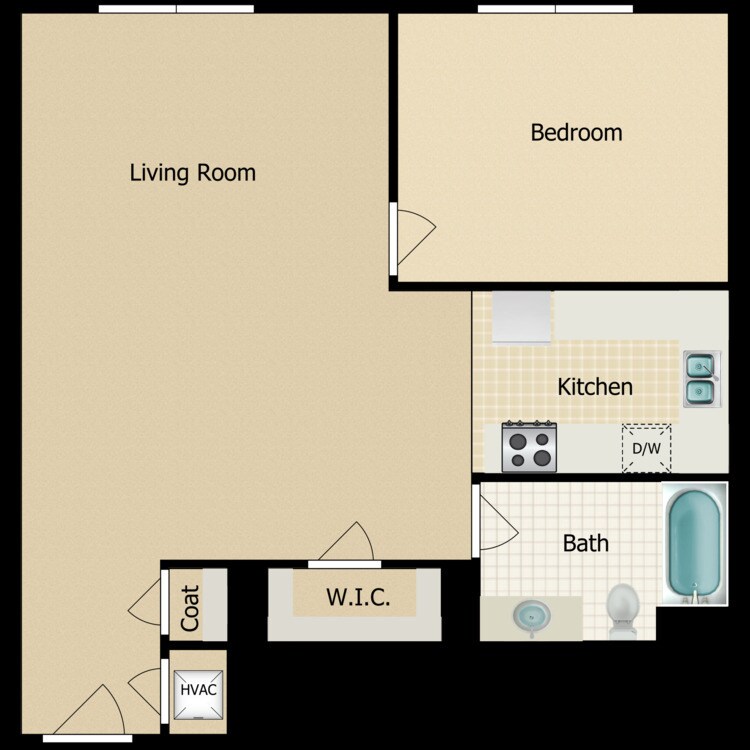 Modelo de apartamento: The AustenLlame para PreciosEstudio, 1 Baño, 432 sq ftNo Disponible![]()