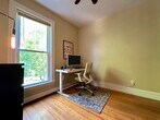 Welcome to 279 Chestnut Avenue #2, a beautifully updated 2-bedroom, 1-bath home offering character, comfort, and prime Jamaica Plain location.Step into a light-filled living space with soaring ceilings, wide-plank hardwood floors, and thoughtful architectural details throughout. The bright bay-windowed living room features custom built-in bookcases and flows into a separate dining room accented by an exposed brick wall ideal for both everyday living and hosting.The spacious eat-in kitchen is a standout, with custom maple cabinetry, a newly installed gas stove, open shelving, and brand new tile. Perfect for cooking enthusiasts! Two well-separated bedrooms provide privacy, including a serene primary bedroom overlooking mature trees. The second bedroom includes a custom closet with a sliding barn door for added style and function.Additional features include: Private laundry and storage, plenty of natural light, off-street parking, shared backyard and patio