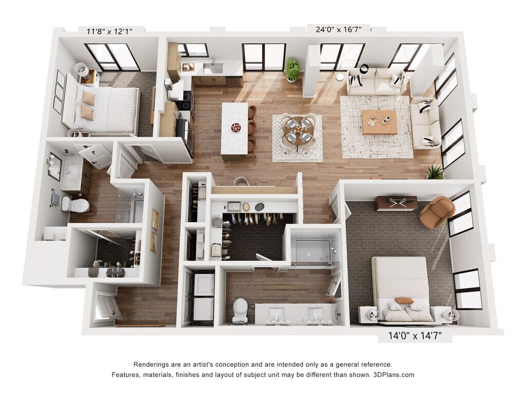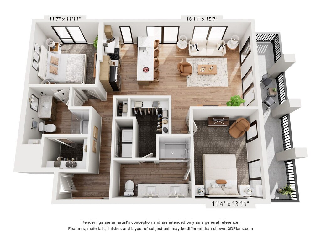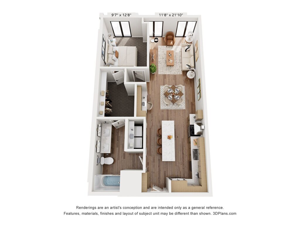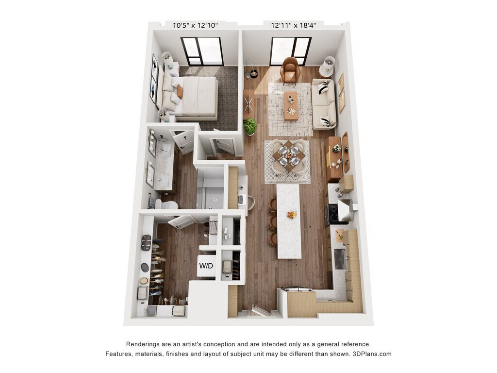 1 Dormitorio, 1 Baño, 677 pies²Disponible AhoraGalería del Modelo
