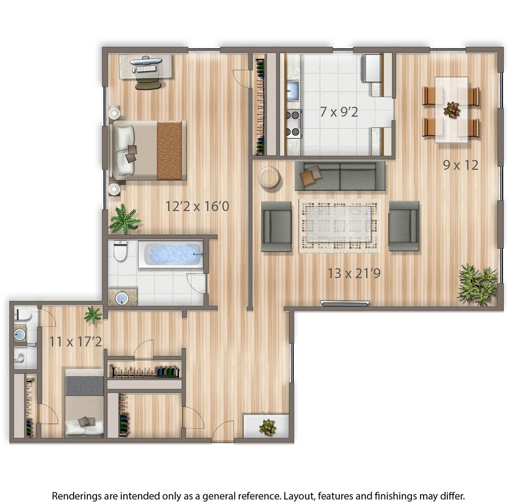 Modelo de apartamento: 1 Bedroom B$2,1581 Dormitorio, 1 Baño, 628 sq ftNo Disponible![]()