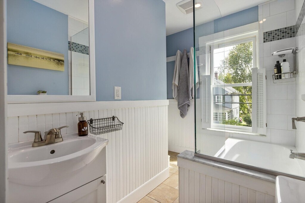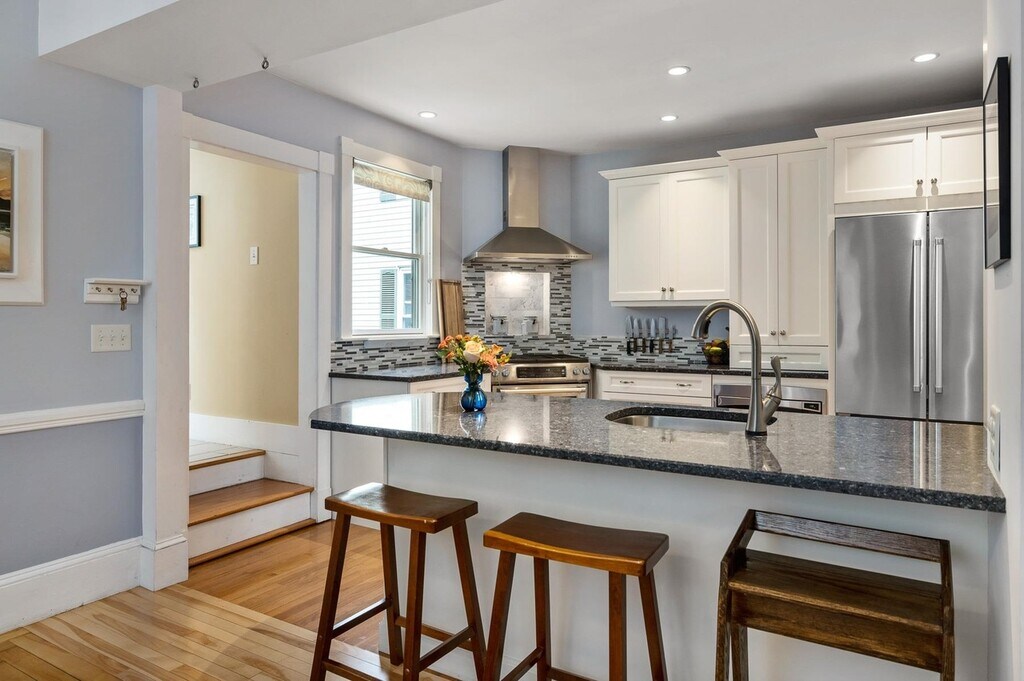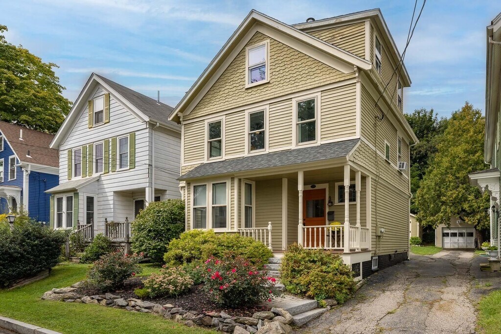 This classic New Englander Style home is located in the desirable North Mill Pond Neighborhood, an easy walk to Downtown, the West End & New Franklin School. Great curb appeal with mature plantings & a granite/paver walkway leading to an inviting front porch. When entering the home from the driveway rear entry you are greeted by a generous mudroom with tiled floor & bench seating. At the center of the home is the updated kitchen with stainless steel appliances, quartz countertops & bar seating. This area has nice sight lines into the dining area with several built-ins. The living room is light filled with plenty of windows. Completing this level is a ¾ bath & laundry area. The beautiful wood floors continue from the 1st up to the 2nd floor. Upstairs there are 3 nicely size bedroom & a full bath. The 3rd floor is a spacious multi-use area with built-in shelving, perfect space for a bonus room, home office or craft room. Off street parking includes a detached garage with a bump-out for additional storage. Come make Portsmouth & this wonderful neighborhood your home.