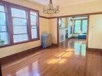 This bright and charming 2-bedroom, 1-bath apartment features gleaming hardwood floors, rich wood trim, and plenty of natural light. The living room offers a decorative fireplace with stained glass and built-in cabinets, while the formal dining room is perfect for entertaining. The updated kitchen includes oak cabinets, a stainless steel refrigerator, and a brand-new stove. Bedrooms are spacious with hardwood floors throughout, and the bathroom features full tile, a soaking tub, and vintage details. Located on a quiet, tree-lined street in a beautifully maintained brick two-flat, this home offers both classic Chicago character and modern comfort, with easy access to transit, shopping, dining, and schools. A dedicated parking garage spot is also included, offering convenience and peace of mind.