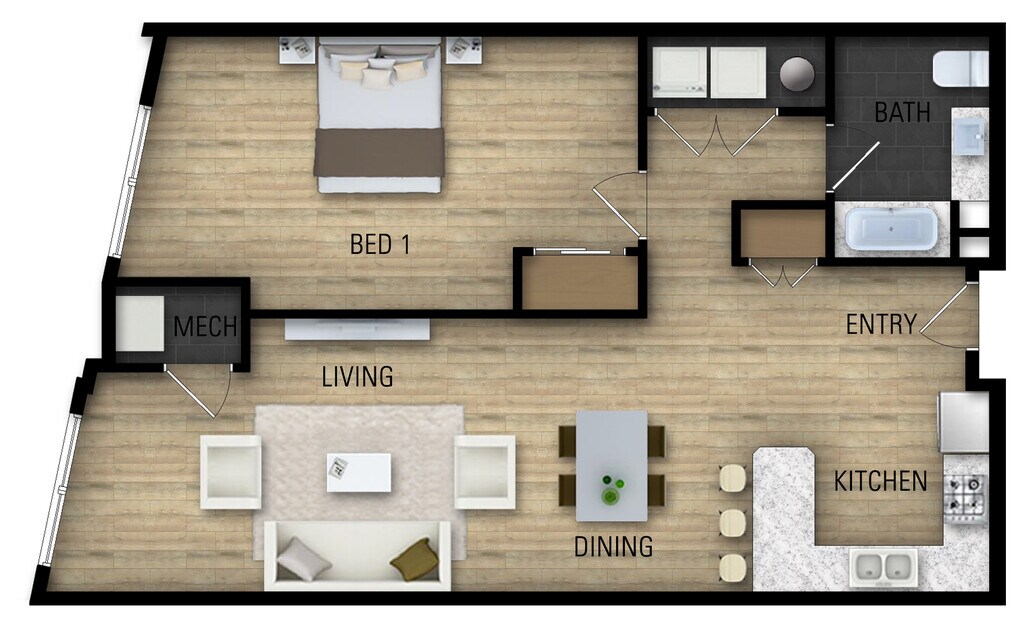 1 Dormitorio, 1 Baño, 922 pies²Disponible Dec 11Galería del Modelo