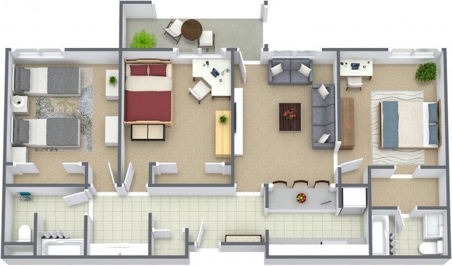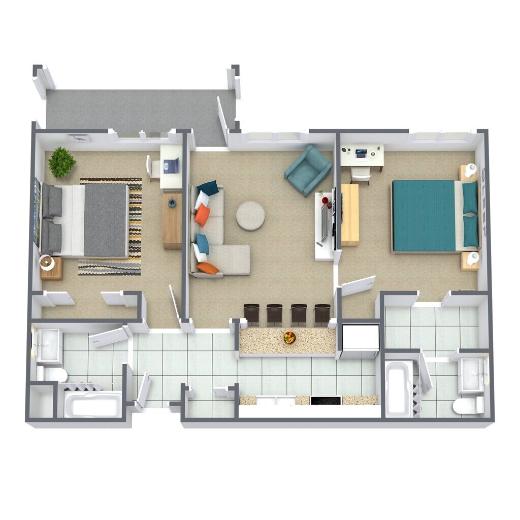Modelo de apartamento: 2 Bedroom 2 Bath$1,2752 Dormitorios, 2 Baños, 865 sq ftDisponible Ahora2 Bedroom 2 Bath - Plano 1 3 Dormitorios