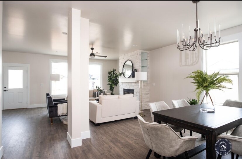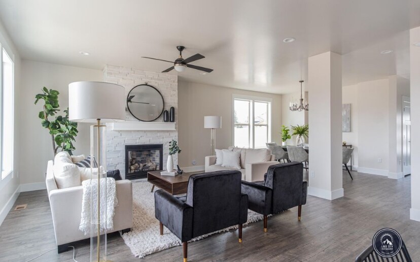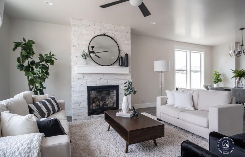Welcome home to this immaculate, modern gem in Post Falls! Built in 2020, this spacious residence offers approximately 2,564 sq ft of refined living space with 3 bedrooms and 2.5 baths—perfectly designed for comfort and convenience. Step inside to an open-concept main level anchored by a stunning rock gas fireplace in the living room, creating a warm and welcoming centerpiece for gatherings. The space flows seamlessly into a chef’s style kitchen, complete with sleek cabinets, stone countertops, and a full appliance package—ideal for both everyday meals and entertaining. Upstairs, the large bonus room is a true highlight, featuring its own cozy fireplace and a custom built-in designer desk—perfect for a home office, creative projects, or a homework station. The primary suite is a private retreat, with another inviting fireplace, a spa-inspired en-suite bath, and generous closet space. Out back, enjoy a large backyard with patio lighting for evening gatherings and a separate, robust gardening area ready for your green thumb. With an attached garage and a corner lot setting, you’ll love the balance of low-maintenance living and outdoor enjoyment. The home also lies in an exceptional location—quiet yet close to local amenities, schools, parks, and easy commuting routes. This home offers the perfect blend of style, warmth, and function—move-in ready for your next chapter.
