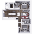 Unidad de apartamento: 114Modelo de apartamento: 2 x 2 - B2 849 SQ FT$2,3712 Dormitorios, 2 Baños, 849 sq ftDisponible October 21, 2025Unidad: 114 - Plano 1