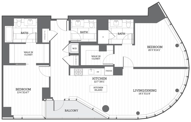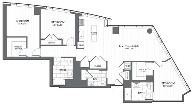 Modelo de apartamento: 1 Bed/1Bath D1Desde $3,6871 Dormitorio, 1 Baño, 669 sq ftDisponible Ahora![]()
