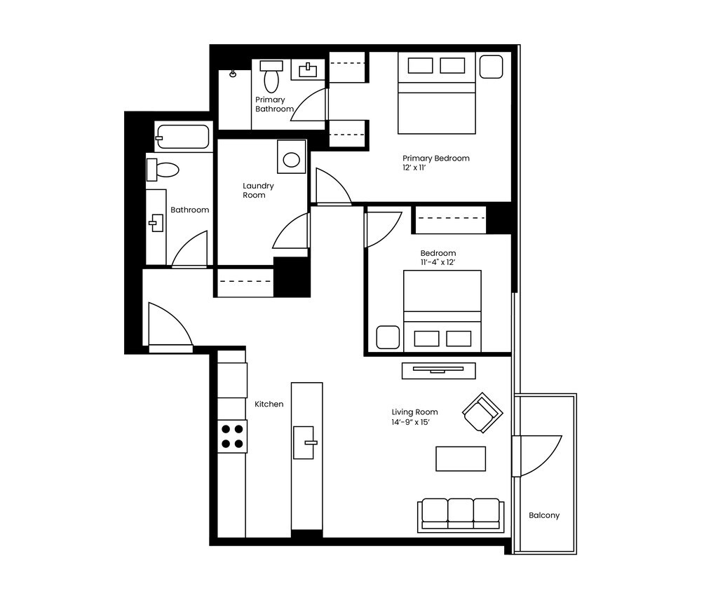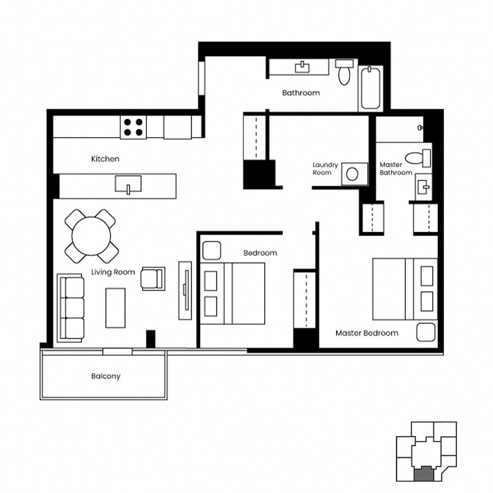 1 Dormitorio, 1 Baño, 720 pies²Disponible AhoraGalería del Modelo
