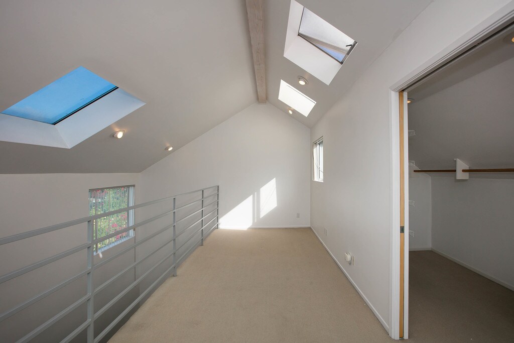 ¡Utilidades INCLUIDAS! Construimos este moderno loft/apartamento tipo estudio en la parte posterior de nuestra casa de Ocean Park, semidesmontado, en un vecindario muy tranquilo, por lo que estamos buscando un inquilino tranquilo. El nivel del entrepiso cuenta con un área de oficinas, un dormitorio, un amplio vestidor, una puerta corrediza de vidrio al balcón con encantadoras vistas de la azotea al este y al sur, a través de Marina Del Rey y la península de Palos Verdes. Este excepcional apartamento está diseñado para un solo ocupante, definitivamente NO para una pareja. Absolutamente NO HAY mascotas que hayan vivido en este apartamento NO HAY MASCOTAS, sin excepciones. Es un apartamento compacto pero espacioso con un alto volumen interior, cuatro tragaluces y dos ventanas clerestory con persianas verticales, lo que permite que la luz del día inunde el apartamento. Ducha con azulejos, sin bañera. Se proporciona un solo lugar de estacionamiento en el lugar a 50 USD/mes adicionales x 12 meses. Un patio muy privado, la lavadora/secadora New Maytag solo para uso del arrendatario. Espacioso espacio de almacenamiento debajo de las escaleras con puerta plegable con seguro (para bicicletas, tablas de surf, etc.) El alquiler incluye todos los servicios públicos (agua, alcantarillado, basura, gas y electricidad). Este apartamento muy especial es perfecto para un inquilino tranquilo en nuestro vecindario muy tranquilo. A siete cuadras de las tiendas, restaurantes, playa y senderos para bicicletas de Main St. A dos cuadras de Starbucks, a tres cuadras de Whole Foods. Fotovoltaico solar.