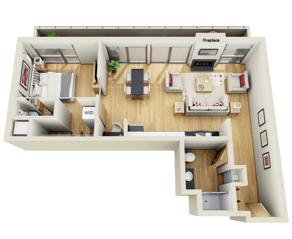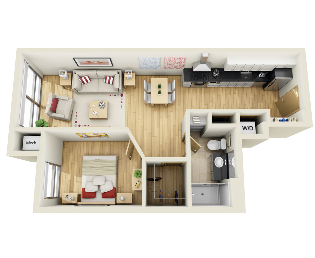 1 Dormitorio, 1 Baño, 832 pies²Galería del Modelo