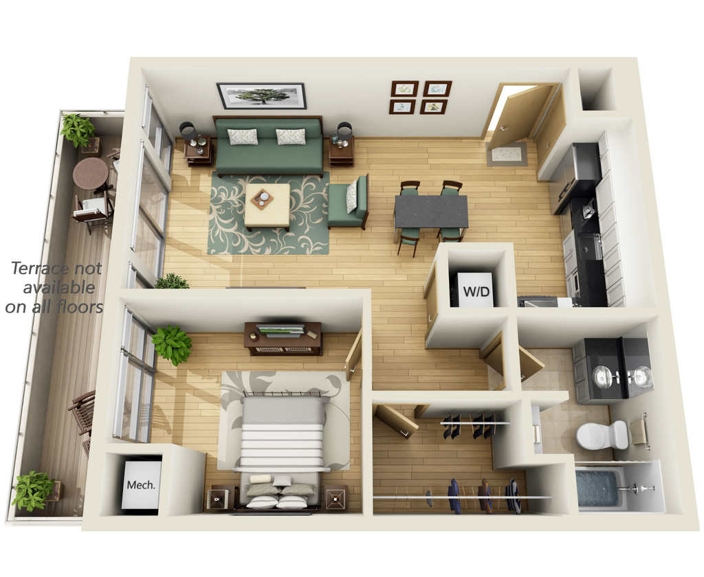 One Bedroom E - Plano 1 One Bedroom A