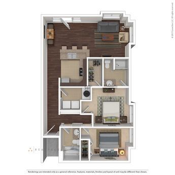 Modelo de apartamento: The River Flat1 Dormitorio, 1 Baño, 915-940 sq ftNo Disponible![]()