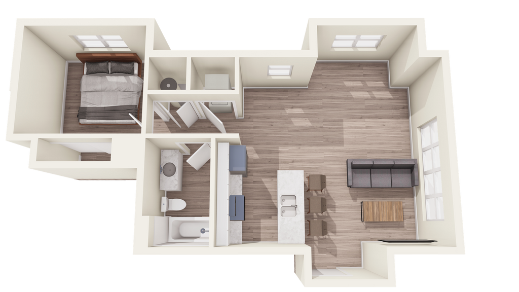 1 Dormitorio, 1 Baño, 750 pies²Disponible August 19, 2026Galería del Modelo