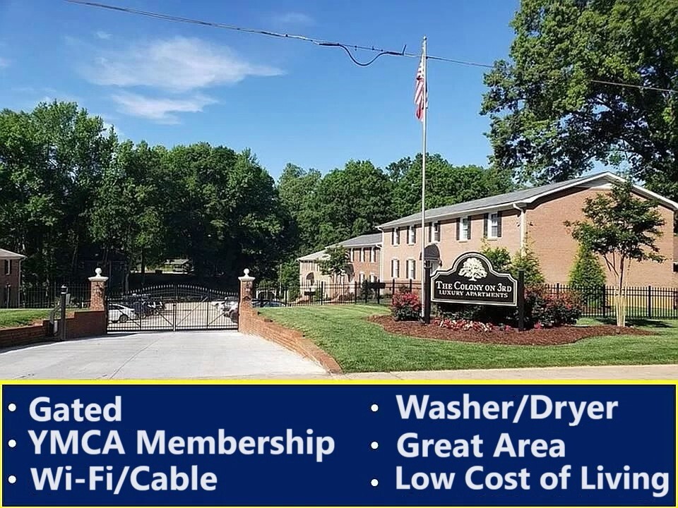 Gated Community! Freshly renovated 2 bedroom, 1 bathroom luxury apartments close to historic Uptown Lexington. Within walking distance to a fantastic YMCA (membership included), dining and shopping on Main St. Each unit boasts a clean modern design with features such as porcelain tile, marble vanity, deep soaking tub in the large bathroom, granite counters, stainless appliances and washer/dryer (included) in the kitchen. Low utility costs! YMCA membership, Wi-Fi and cable package included in rent. The Colony on 3rd is a wonderful place to call home! 1 Parking space in front of your building included. No smoking indoors. Gazebo, or rear of each building designated smoking areas