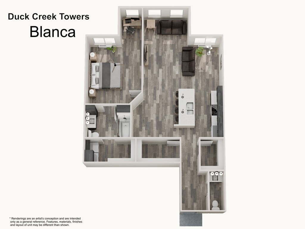 1 Dormitorio, 1 Baño, 923 pies²Disponible AhoraGalería del Modelo