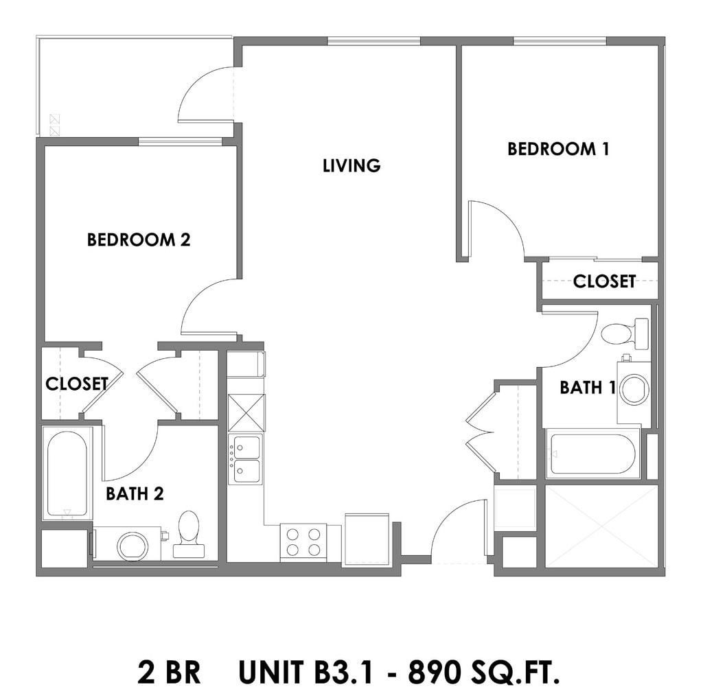 1 Dormitorio, 1 Baño, 653 pies²Disponible AhoraGalería del Modelo