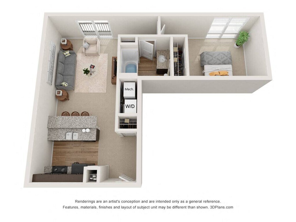 Modelo de apartamento: DeanDesde $1,2751 Dormitorio, 1 Baño, 612-644 sq ftDisponible Ahora![]()