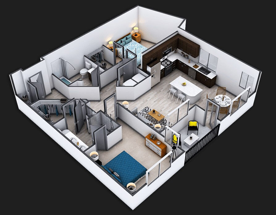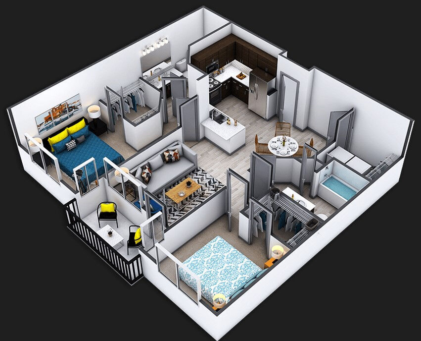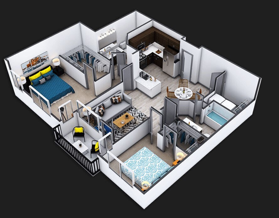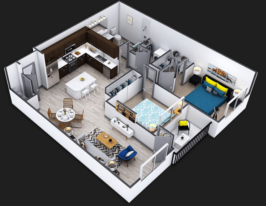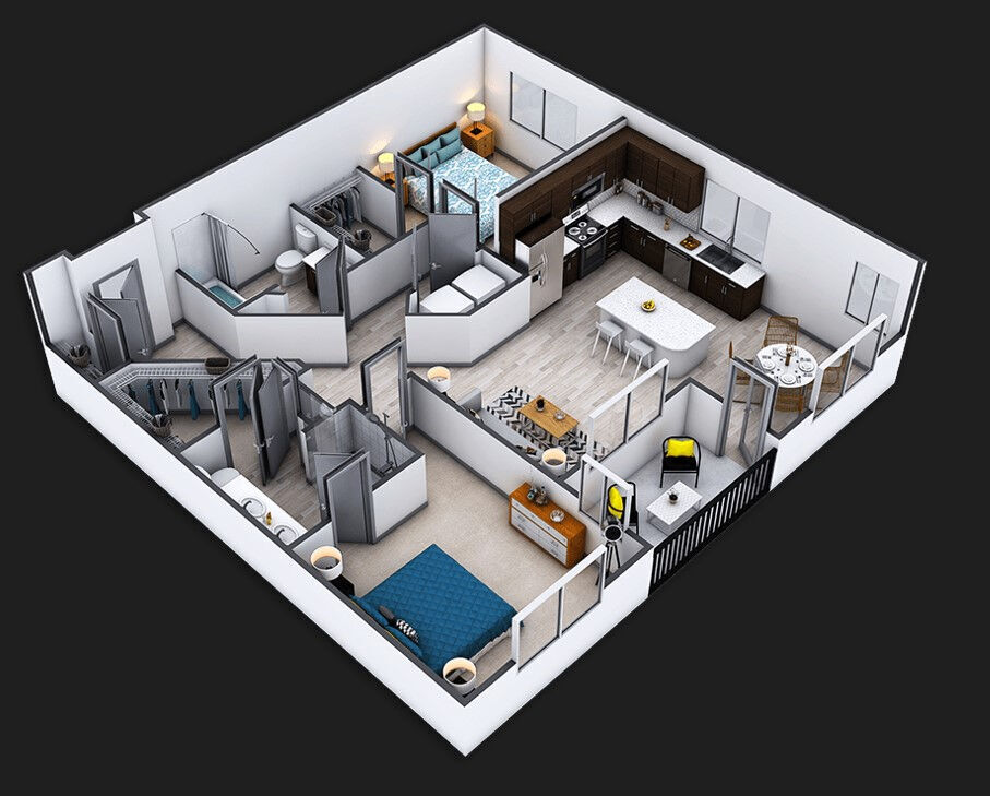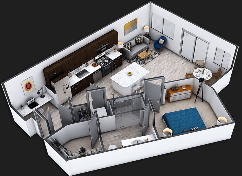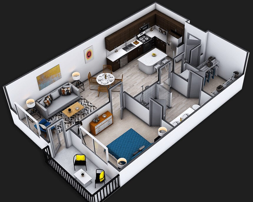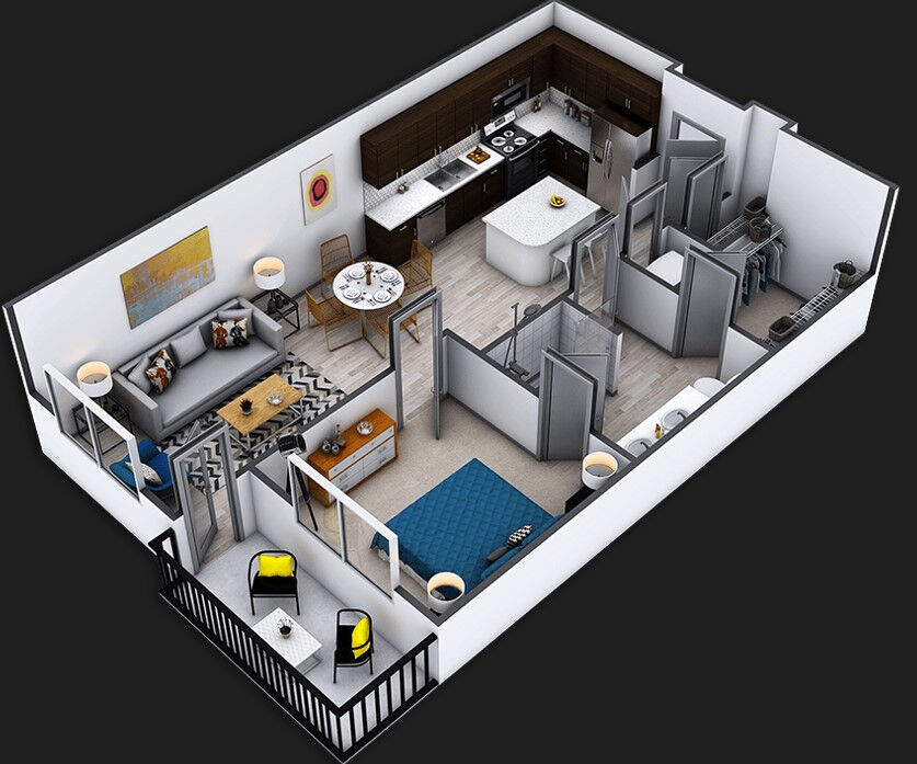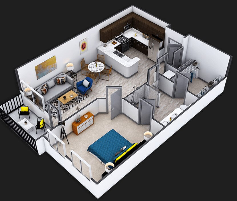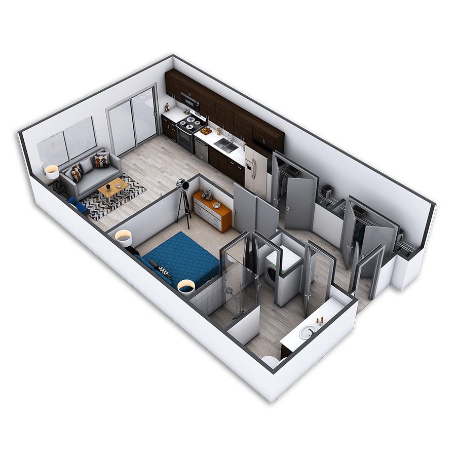 1 Dormitorio, 1 Baño, 800 pies²Disponible AhoraGalería del Modelo
