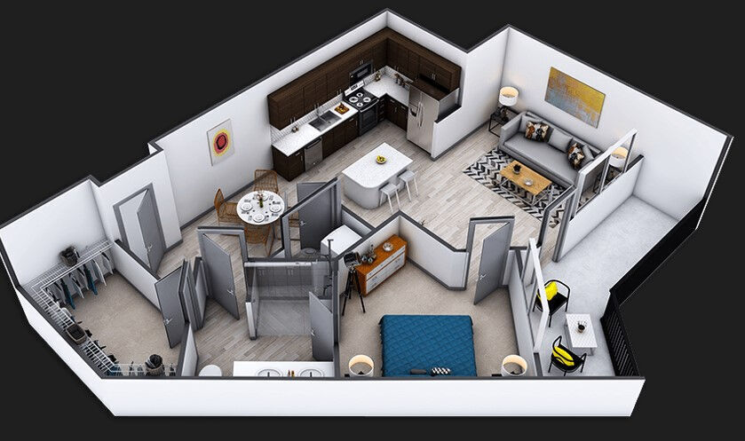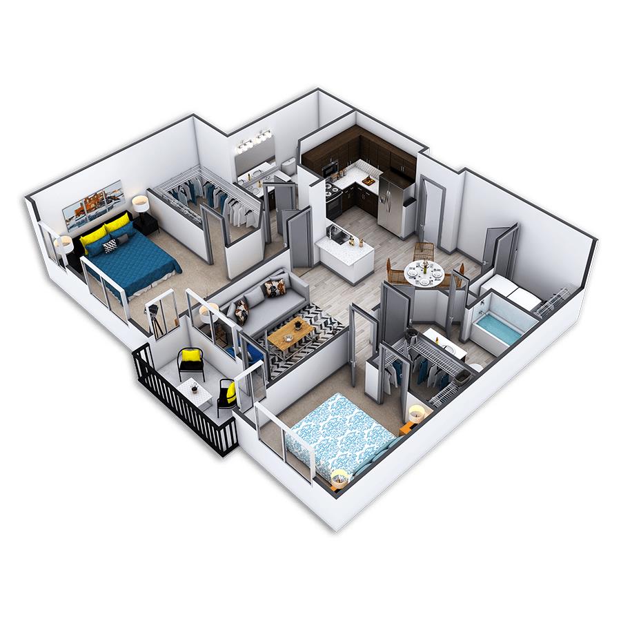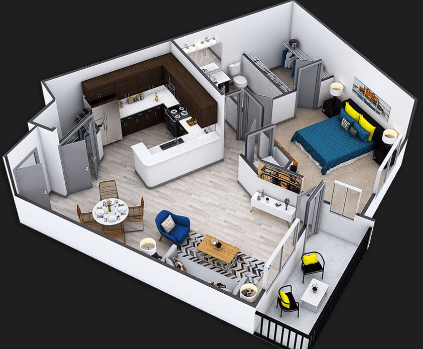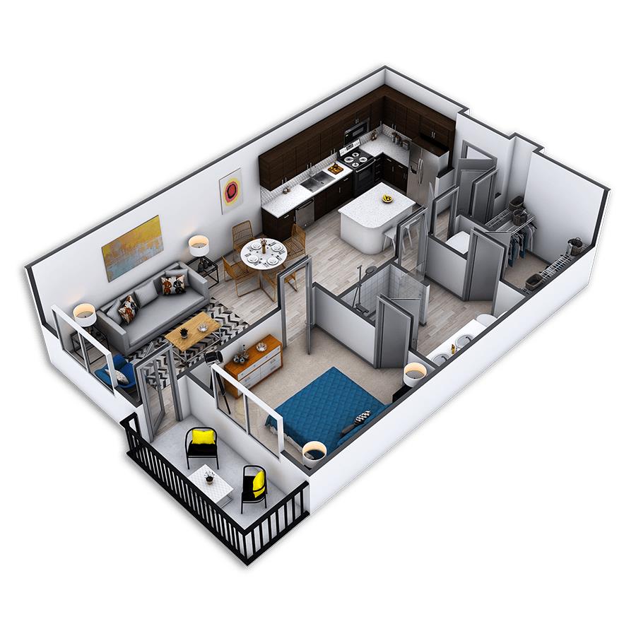 1 Dormitorio, 1 Baño, 690-716 pies²Disponible AhoraGalería del Modelo