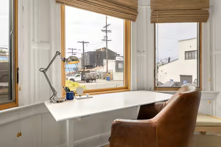 This cozy and charming upstairs home is just steps from the beach in Marina del Rey. With 2 BR, 1 BA, and plenty of natural light, it’s the perfect spot to relax and recharge. Enjoy your own private entrance, a sunny rooftop deck, free parking in front of the garage, and an in-unit washer and dryer. Stay connected with fast Wi-Fi, stream on the smart TV, and cook with ease in the fully equipped kitchen. A peaceful and convenient beachside escape awaits. Welcome to your private beach getaway! This bright upstairs unit is just a short walk from the sand in Marina del Rey. Sunlight fills the space, creating a warm and relaxing atmosphere. The open and airy layout makes it easy to unwind, while the cozy furnishings and coastal touches give it a charming, homey feel perfect for a laid-back escape by the water. **30 nights minimum, choose 31 nights to remove city tax.** What can you expect on the place Bedrooms & Sleeping – Primary bedroom with a queen bed; second room can be a home office or sleeper sofa for extra guests. Comfortable for 1–2 people, can host up to 4 adults. Outdoor Space – Private rooftop deck for morning coffee or evening relaxation; shared fire pit and picnic table with neighbor. Convenience – In-unit laundry and parking in front of the garage (note: tight space, depends on car size). Trash bins are easy to manage with provided instructions. Inside Amenities – Fast Wi-Fi, smart TV, fully equipped kitchen, air conditioning, fresh linens, and thoughtful touches throughout. Parking comes with a note: there’s frequent traffic to the lot behind the garage, so space is tight and really depends on the size of your car. We’ll provide clear instructions for trash bins too, they stay inside the gate and get rolled out on trash day to keep things running smoothly. Best places to eat and visit near the place Near Pacific Ave, Marina del Rey, you’ll find a variety of dining and attractions to enjoy. Eat waterfront seafood and craft cocktails at SALT Restaurant & Bar, savor refined American dishes at Dear Jane’s, try creative plant-based Mexican cuisine at PLANTA Cocina, enjoy hearty pasta and garlic rolls at C&O Cucina, or take in marina views with contemporary Californian fare at Cast & Plow. For activities, relax at Burton W. Chace Park, go parasailing over the marina, stroll the lively Venice Beach Boardwalk, visit the art-filled Getty Villa in Malibu, or have fun at the Santa Monica Pier with its amusement park and ocean views.