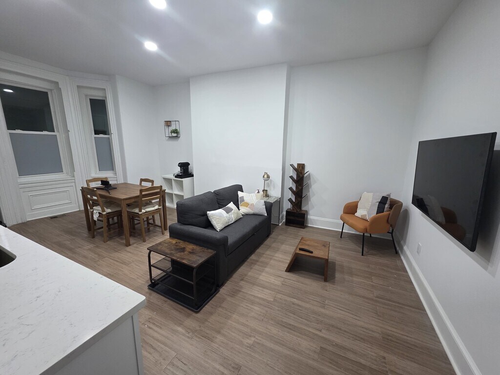 FULLY FURNISHED Rooms and living space. Newly and fully renovated August/2025. Lease term can be negotiated. This is First level unit with 2 bedrooms and 1.5 Bathroom that has 1200 sq feet of living space with a Backyard and front patio. Each room is equipped with a desk, a chair, and a Queen Size bed (Approximately 100 square feet). In the living space, a dining table with chairs are placed that could comfortably accommodate 4 people. Most of the Kitchen Appliances are new including Refrigerator. The living space also has a 55-inch Samsung smart TV and sofa. The house has so much space for personal belongings. Verizon FIOS Internet is provided. Bathroom has the Free Standing Bathtub and separate shower. This house has central heating and cooling. No pets allowed. No Smoking Allowed. Preferred contact through text message.