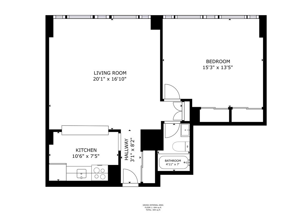 1 Dormitorio, 1 Baño, 706 pies²Disponible AhoraGalería del Modelo