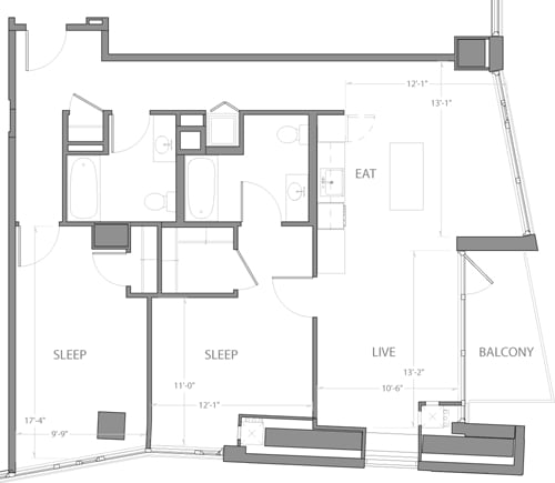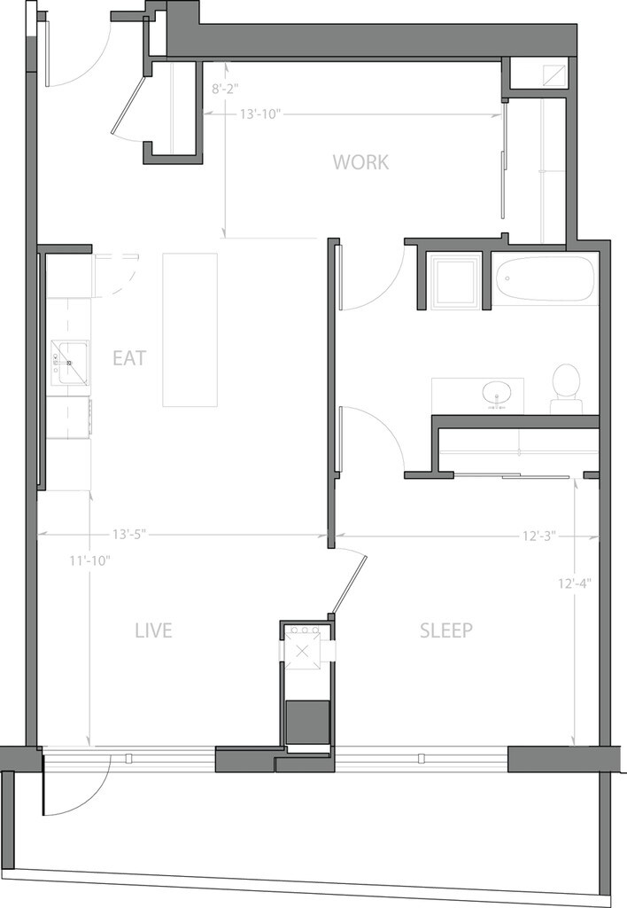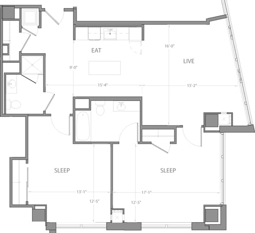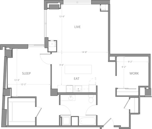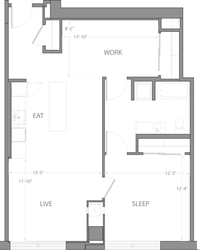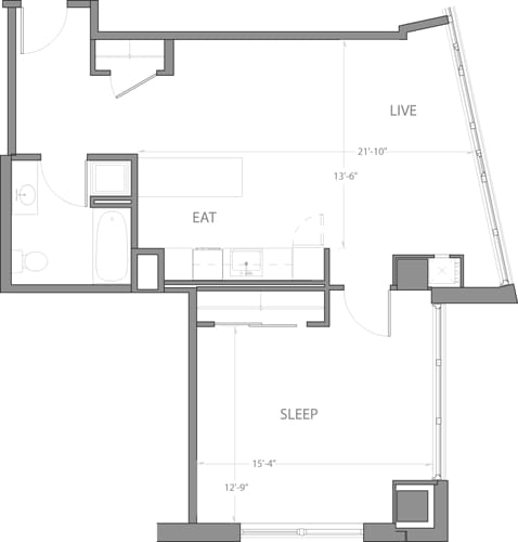 Studio B - Plano 1 Unidad de apartamento: 1-1112Modelo de apartamento: Studio B$2,989Estudio, 1 Baño, 591 sq ftDisponible AhoraStudio C