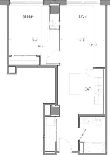 Studio A - Plano 1 Unidad de apartamento: 1-1702Modelo de apartamento: Studio A$2,834Estudio, 1 Baño, 464 sq ftDisponible January 8, 2026Studio C with Terrace