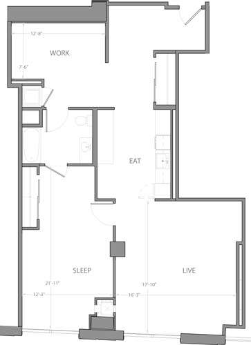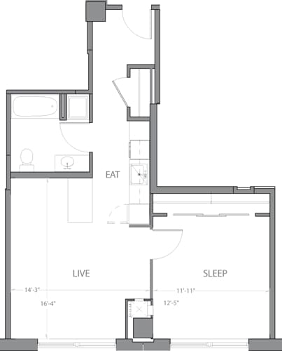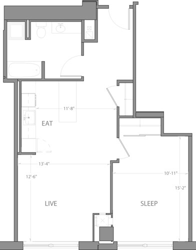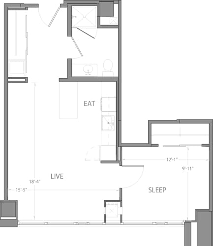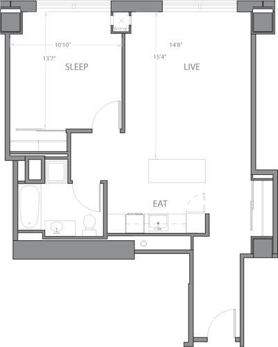 Estudio, 1 Baño, 601 pies²Galería del Modelo