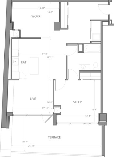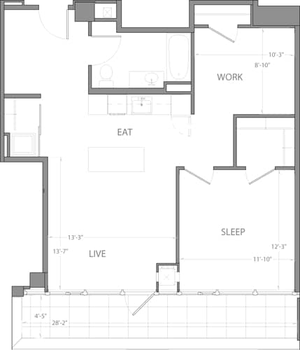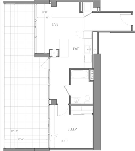 Modelo de apartamento: Studio C with TerraceLlame para PreciosEstudio, 1 Baño, 601 sq ftNo Disponible![]()