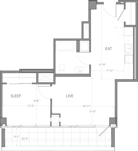 Modelo de apartamento: Studio DLlame para PreciosEstudio, 1 Baño, 730 sq ftNo Disponible![]()