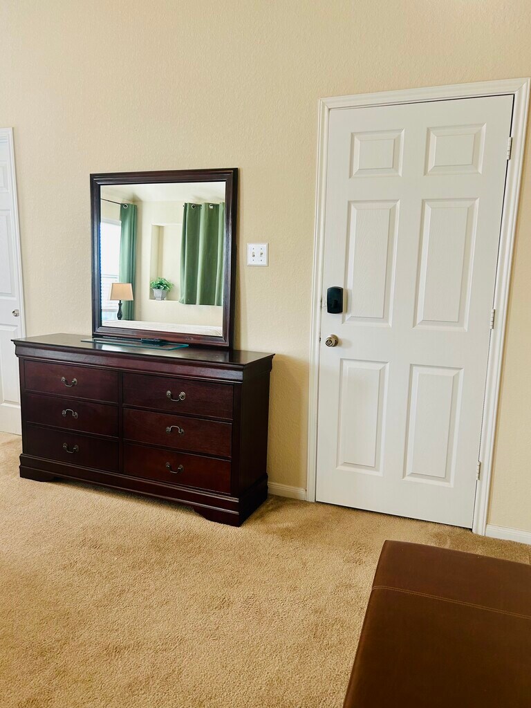 Welcome to this Classy Large Master Bedroom with 2 walking closets and a nice private bathroom with a tub to relax after a long day at work. The ensuite has a mini fridge, a microwave, a coffee station and a desk to make your stay comfortable and convinient. The house kitchen and social areas (living & dining room) are also available for your use. You don’t have to worry about Houston’s rainy days with a parking garage spot (and driveway) reversed for you. The house is centrally located near hospitals, colleges and major highways. Enjoy your stay in Katy in this peaceful and private place.