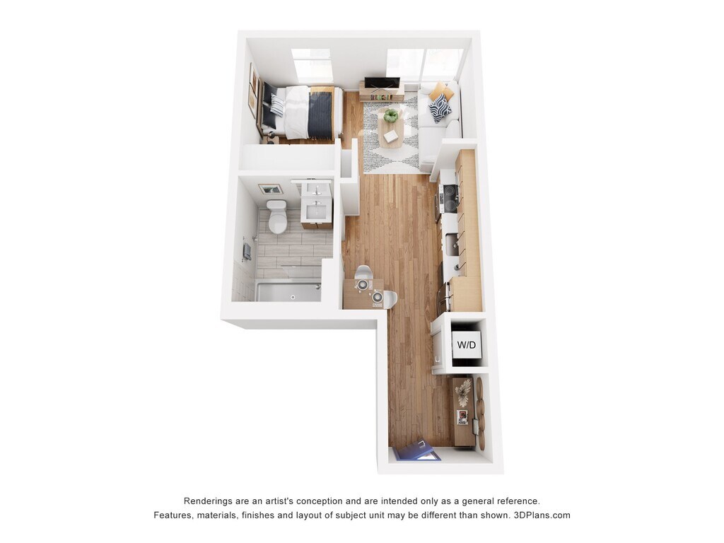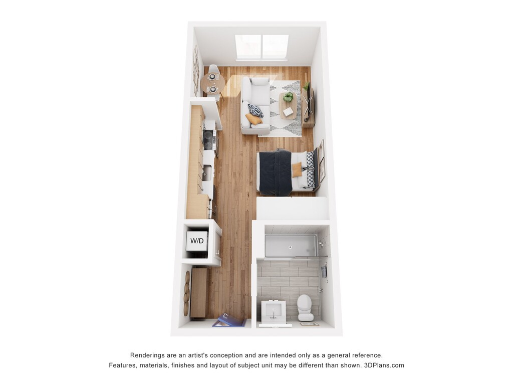 Studio - Plano 3 Unidad de apartamento: 509Modelo de apartamento: StudioEstudio, 1 Baño, 402 sq ftDisponible Ahora2 Dormitorios