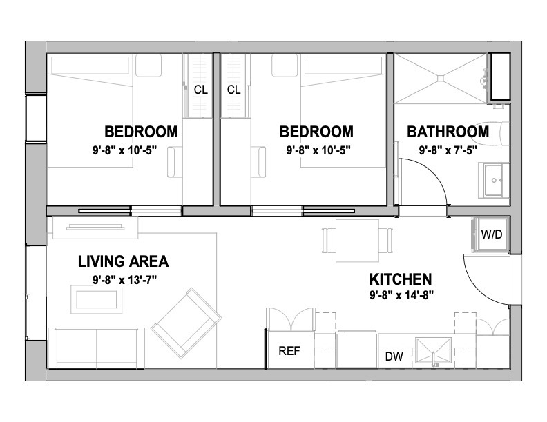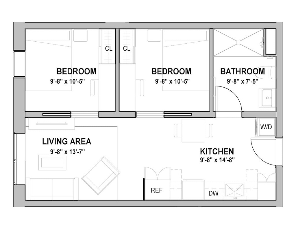 2 Bedroom - Plano 2 Unidad de apartamento: 506Modelo de apartamento: 2 Bedroom2 Dormitorios, 1 Baño, 562 sq ftDisponible Ahora2 Bedroom 2 Bath