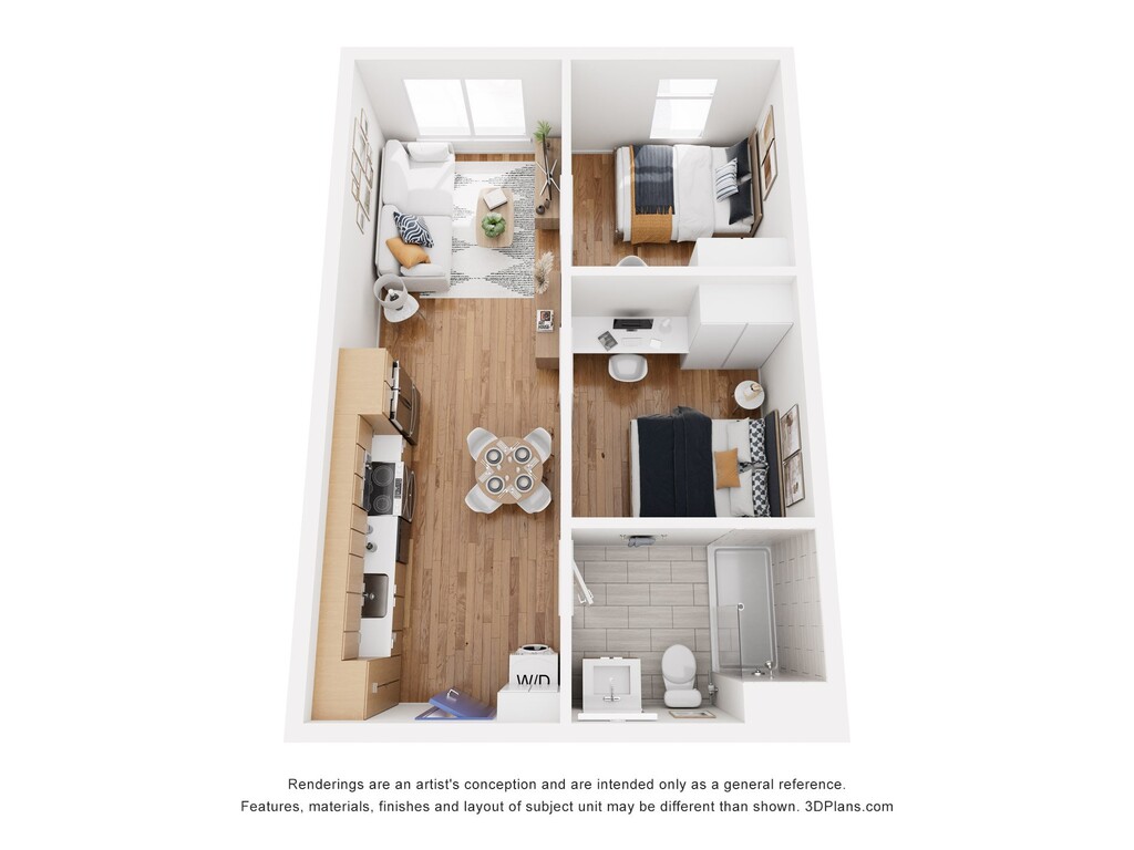 2 Dormitorios, 1 Baño, 562-571 pies²Disponible AhoraGalería del Modelo