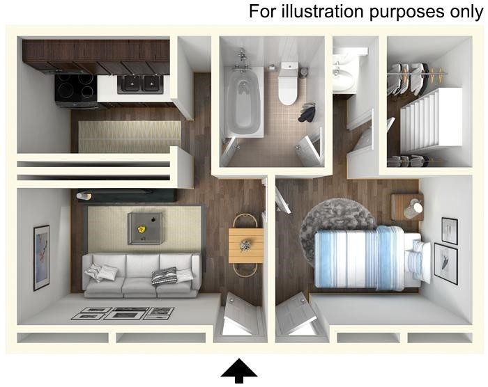 Estudio, 1 Baño, 280 pies²Galería del Modelo