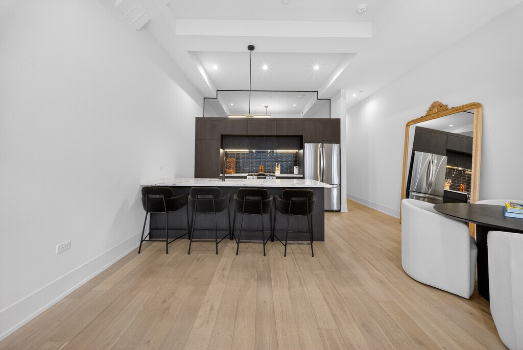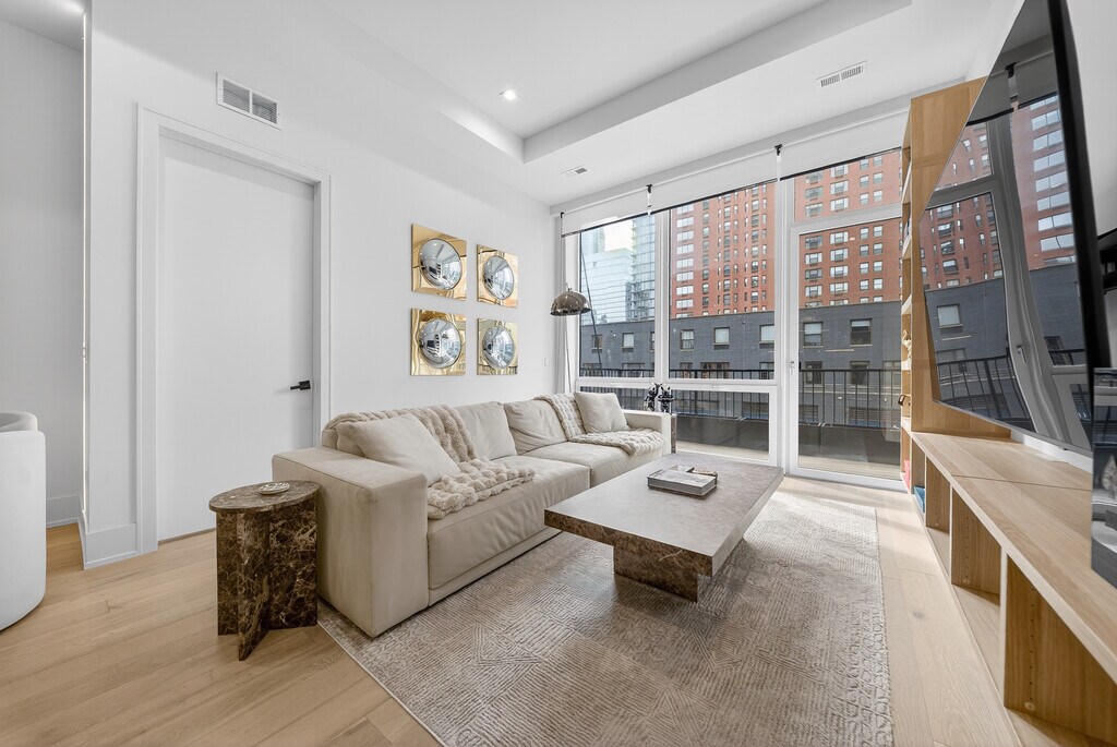 Welcome to 318 W Grand Ave, a newly renovated boutique 12-unit apartment building nestled in the vibrant River North neighborhood. This spacious 2 bedroom, 2 bathroom unit offers 1,100 square feet of modern living with high-end designer finishes throughout. Step into a bright, open-concept living space featuring floor-to-ceiling windows, wide-plank hardwood floors, and a sleek gourmet kitchen equipped with quartz countertops, custom cabinetry, and stainless steel appliances. Both bedrooms are generously sized, with the primary suite offering an en-suite bath and ample closet space.