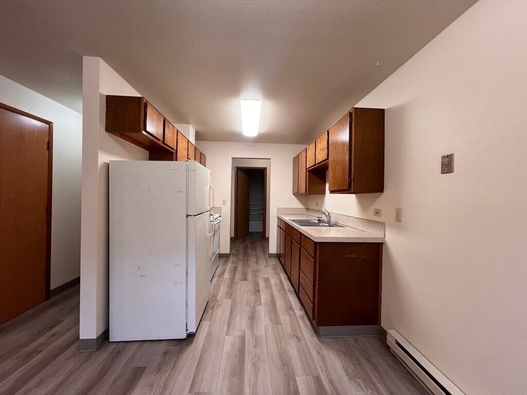 Centrally located close to restaurants, freeway access, and more! New LVP flooring, freshly painted, washer/dryer hookups in unit, assigned parking, and located in a small 12-unit community. Ample storage space throughout the apartment, an outdoor storage shed, and a semi-private front patio. Call today to schedule a tour! Wall Heat/No AC. Utilities Included: Water, Sewer, and Garbage/Recycling. Landscaping is included!