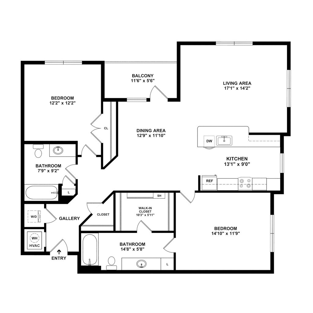 Modelo de apartamento: Patapsco$2,0451 Dormitorio, 1 Baño, 784 sq ftDisponible January 22, 2026![]()