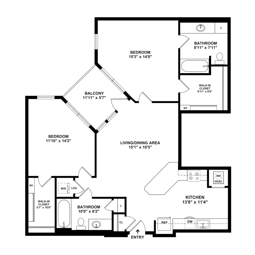 Magothy - Plano 4 Unidad de apartamento: 211Modelo de apartamento: Magothy$1,9251 Dormitorio, 1 Baño, 622 sq ftDisponible December 18, 2025Susquehanna