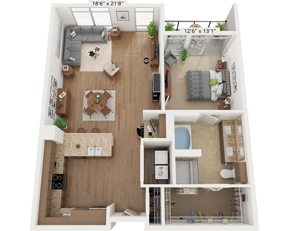 Modelo de apartamento: Studio E1A1Desde $1,696Estudio, 1 Baño, 529 sq ftDisponible December 25, 2025![]()