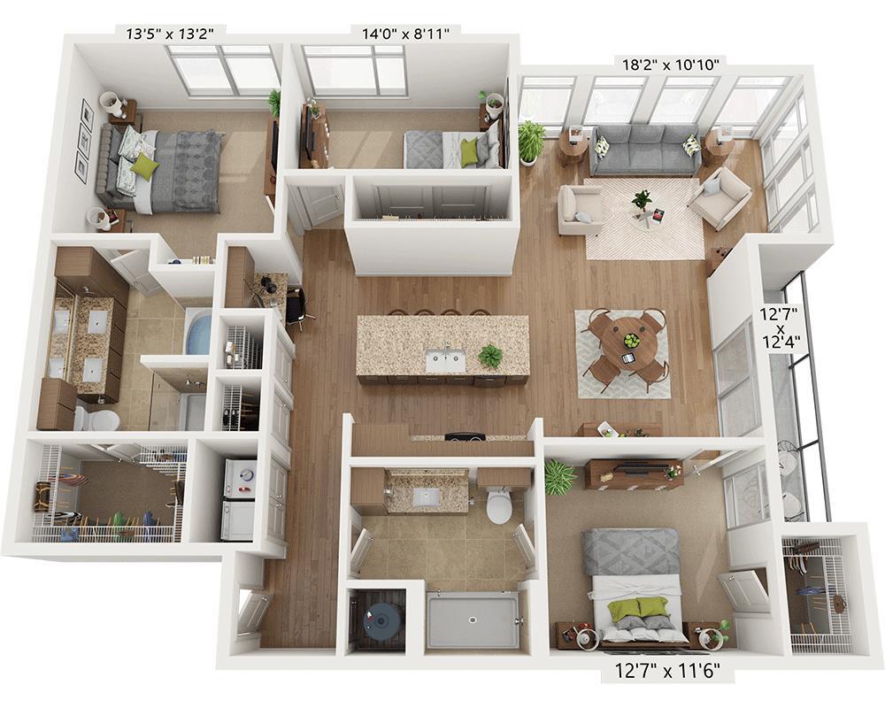 - Estudio, apartamentos de una, dos y tres habitaciones con planos de planta abiertos
