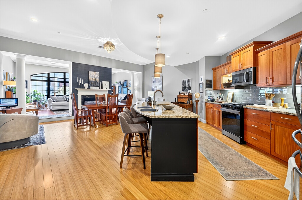 RARELY AVAILABLE. Loft 2 at The Lofts at Syracuse Trust is one of the most exceptional residences in all of Downtown Syracuse. Encompassing nearly 3,000 square feet within a boutique building of just four private homes, this grand two-bedroom, two-bathroom residence offers a level of scale, character, and refinement that is simply unmatched. The loft’s soaring ceilings and dramatic proportions create an atmosphere of elegance and openness, while period architectural details are preserved and seamlessly integrated with the finest modern conveniences. A sweeping open-plan design provides effortless flow for both intimate daily living and large-scale entertaining, anchored by a striking two-sided gas fireplace that lends warmth, ambiance, and a true sense of occasion. Natural bamboo flooring, a step-up living room, and countless custom upgrades further elevate the home, while thoughtful touches—such as eleven closets and a full laundry room complete with sink, cabinetry, and easy-care flooring—ensure both luxury and livability. The gourmet kitchen is equally impressive, offering premium appliances, bespoke finishes, and a design tailored for both culinary creativity and sophisticated entertaining. Set in the heart of the city center at 325 South Salina Street, The Lofts at Syracuse Trust place you at the doorstep of Armory Square’s finest dining, shopping, theaters, and cultural attractions. Here, the energy of downtown living meets the intimacy of a private, boutique residence. Rarely available and impossible to replicate, Loft 2 is a true diamond in the crown of Syracuse real estate—an opportunity for discerning residents to claim one of the city’s most remarkable addresses. Private showings are available by appointment.