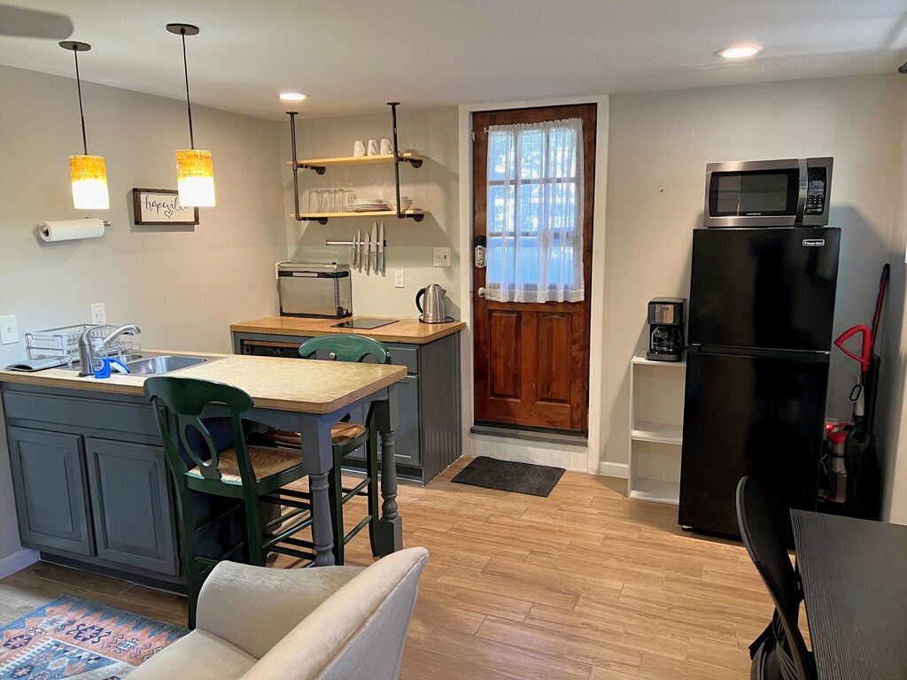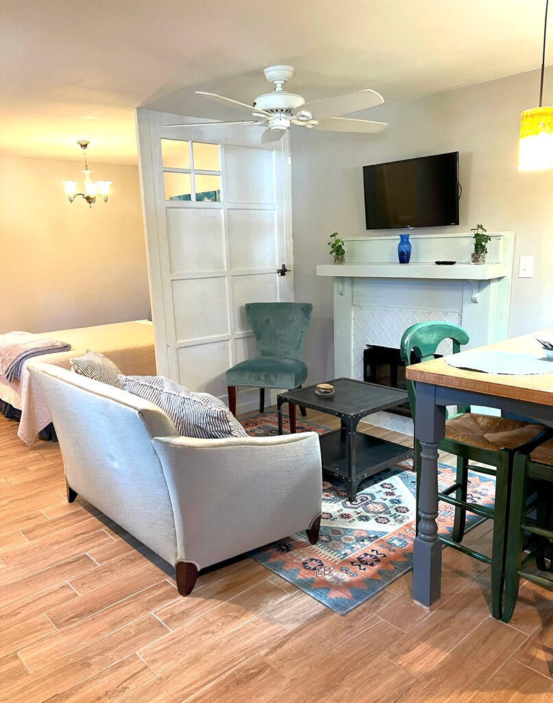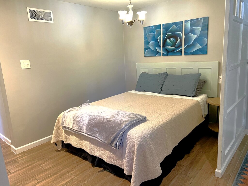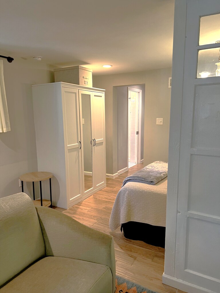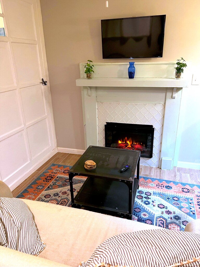 MUEBLES * MUEBLES * MUEBLES * MUEBLES* Los servicios públicos incluidos* tendrán un mínimo de 30 días de arrendamiento, pero prefieren 3 meses o más. Acogedor apartamento tipo estudio con sótano, terraza privada y entrada lateral. Vecindario residencial. Ideal para cualquier persona que trabaje cerca del aeropuerto, en el área sur de Atlanta o de forma remota. El tamaño del espacio es adecuado para una persona. Los propietarios viven por encima del apartamento tipo estudio en la casa principal con un perro y un gato. Tres ventanas dejan entrar abundante luz natural. La amplia área de cocina incluye una placa de cocina con inductor ultrarrápida, un horno de sobremesa Ninja, una tostadora/freír con aire, un horno de microondas y un refrigerador grande. Si trabaja desde casa o necesita un área de oficina, parte de la sala de estar incluye un escritorio y una silla ergonómica para oficina. La sala de estar incluye un cómodo sofá, televisor inteligente y chimenea eléctrica con ventilador. Hay una lavadora/secadora todo en uno en el baño. El dormitorio está parcialmente separado de la sala de estar con un elegante divisor. Estacionamiento para un vehículo pequeño o mediano en la entrada; los vehículos grandes utilizan el estacionamiento en la calle. A 11,2 kilómetros/7 millas del centro de Atlanta. Hapeville es una ciudad de menos de 7000 personas, por lo que tiene un ambiente divertido y pequeño junto a la gran Atlanta. Comunidad en la acera donde los vecinos caminan a sus perros, trotan o andan en bicicleta. A pocos pasos de Arts Alley, cervecerías y restaurantes locales, un estudio de yoga, parques locales y mucho más. Cerca del aeropuerto de Atlanta. Roku Smart TV está disponible para la configuración de los propios servicios de streaming del inquilino. Wi-Fi de fibra AT&T de ALTA VELOCIDAD El alquiler mensual es de $1500. Tarifa de solicitud de $30 por cada arrendatario de 18 años o más. El depósito de garantía reembolsable es de $500. Tarifa de limpieza no reembolsable de $100. Precios y/o fechas de disponibilidad, muebles sujetos a cambios. Los metros cuadrados y las características son aproximados.