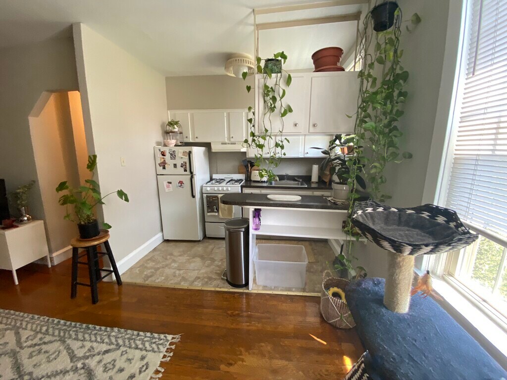 Amplio apartamento cuenta con lavandería en el edificio y está ubicado en el corazón de Society Hill. El piso original de madera noble en todo el apartamento. El habitación y la sala de estar paredes están decoradas con ventanas que admiten que entre una gran cantidad de luz natural. La cocina cuenta con una amplia cantidad de gabinetes, y el apartamento ofrece mucho espacio de guardarropas. Ambas salas de estar tienen ventiladores de techo, y el baño está equipado con una bañera. El edificio está equipado con una hermosa área privada al aire libre que se comparte con los otros inquilinos en el edificio.