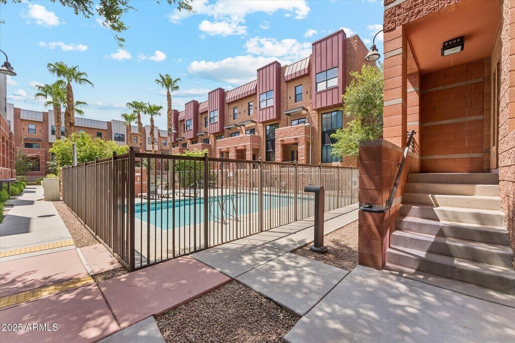 Location! Location! Location! This spacious 3 bedroom 3 bathroom townhouse is just steps away from the energy and activity of Mill Ave, shops, restaurants, entertainment and ASU, yet also tucked away in a luxurious townhouse development with private pool, spa, and courtyard. It was built in 2016 with a new 2024 AC, washer dryer in the unit, and its own attached 2 car garage and guest parking in the development. It has 2 balconies, one off the kitchen perfect for grilling and one off the family room with a beautiful view of the pool and courtyard. Large eat-in kitchen, stainless steel appliances, ceiling fans in every room, and lots of closets and storage space. This corner unit has floor to ceiling windows and exposure to natural light on three out of four sides. Owner pays HOA fees. Available to move in August 24. Less than 1 year lease is also available.