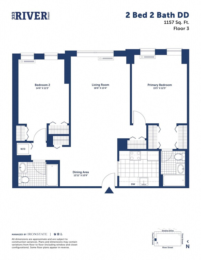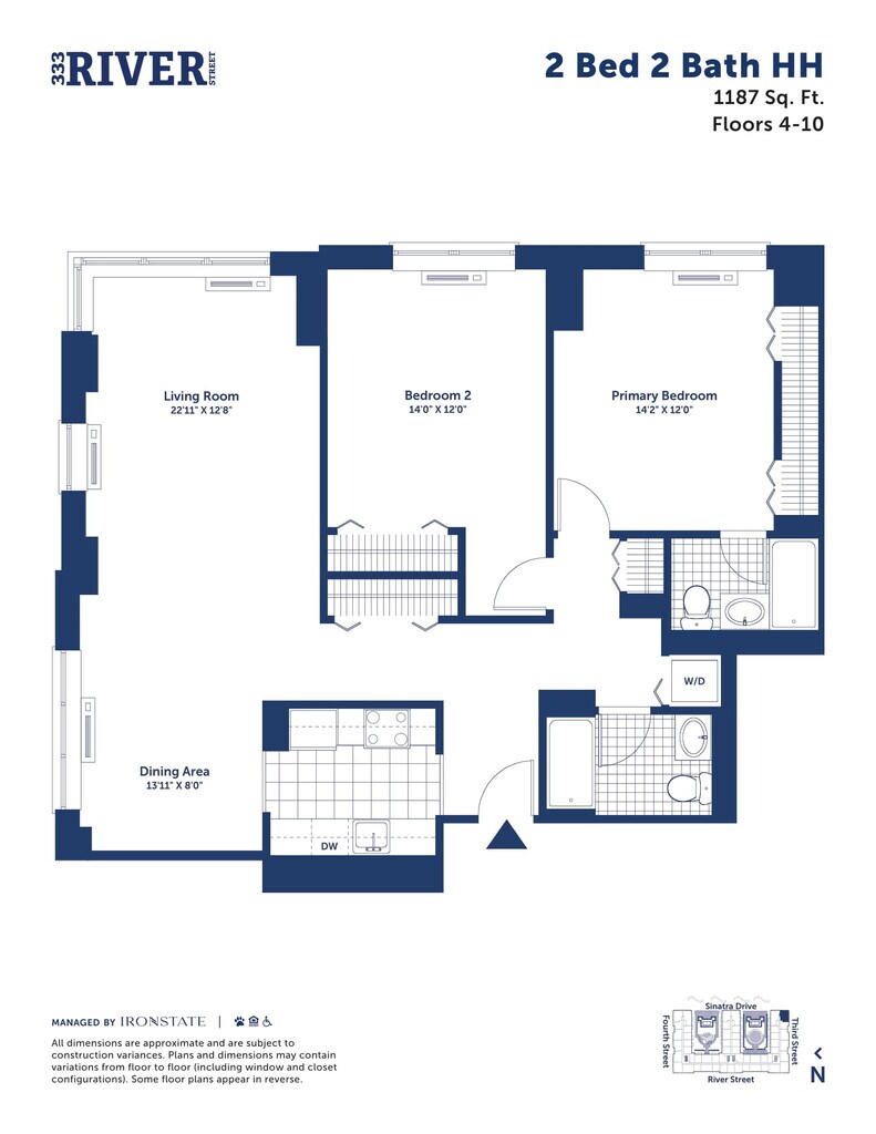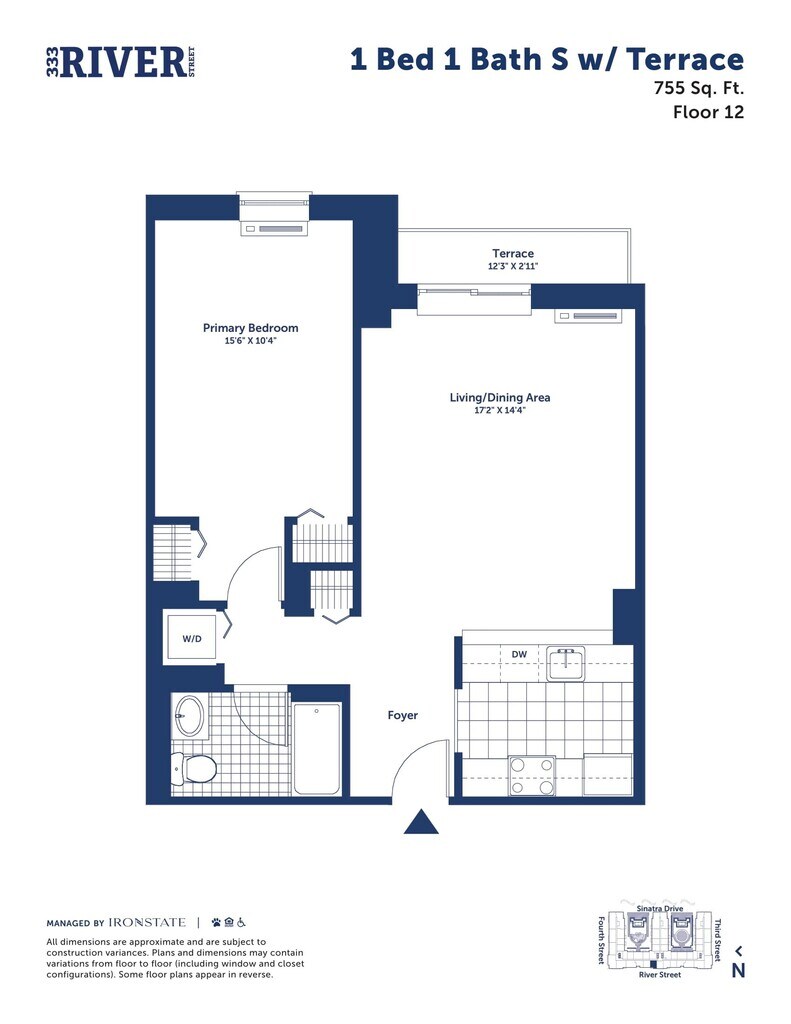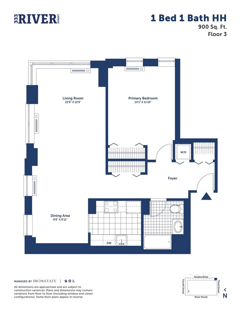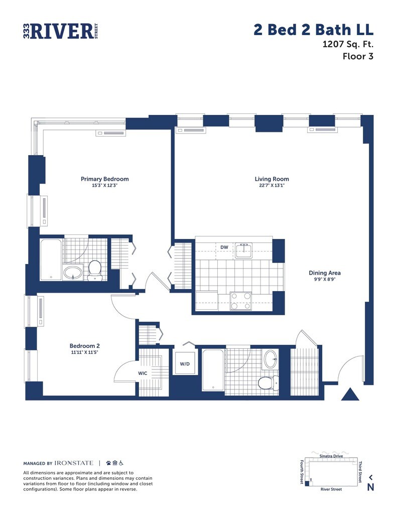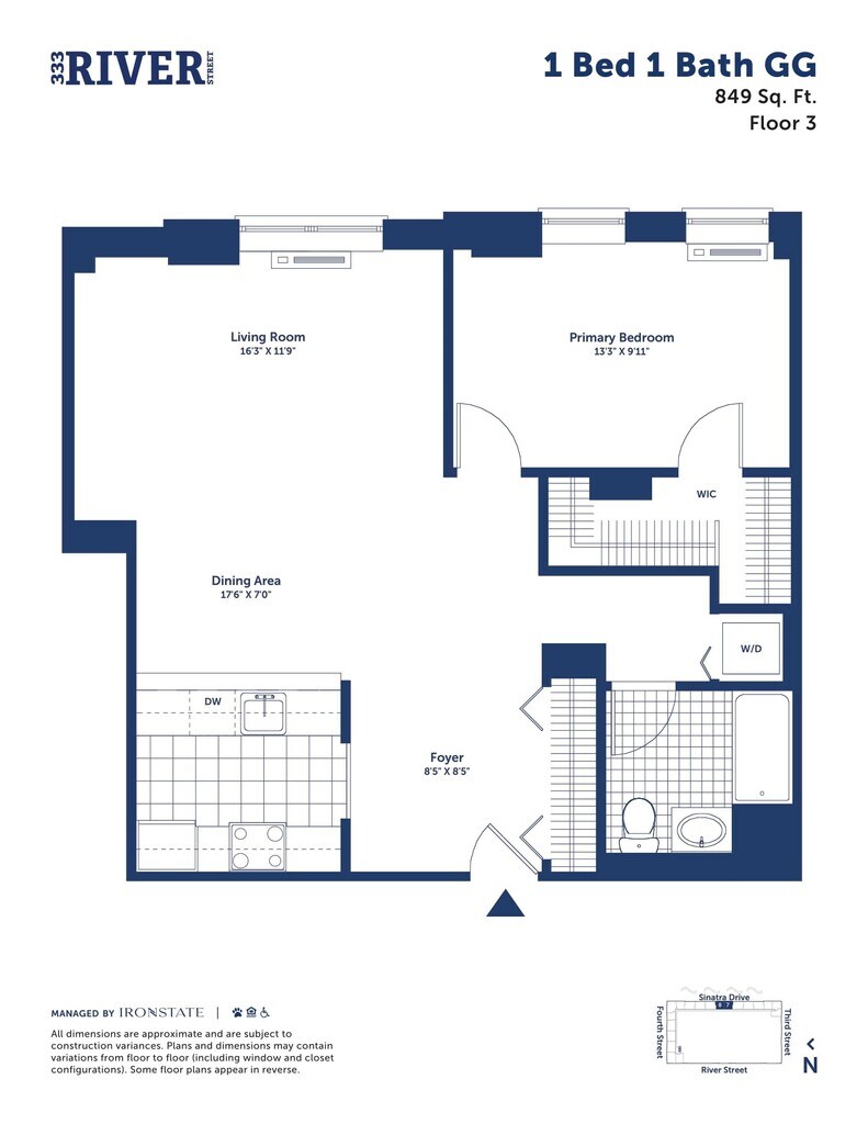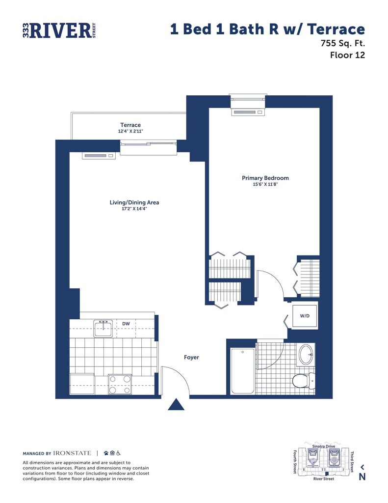 ¡Solo por tiempo limitado! ¡3 meses gratuitos con un contrato de arrendamiento de 15 meses! Bienvenido a 333 River Street. Esta dirección de Hoboken te coloca en el corazón de la elegancia junto al río, con vistas que barren el río, el horizonte y el puerto de Nueva York. Los residentes se benefician de una gran variedad de tiendas de venta al por menor en el lugar, un putting green, almacenaje para bicicletas y el acceso a Manhattan que está a solo unos pasos de distancia por medio del PATH, en autobús o transbordador.